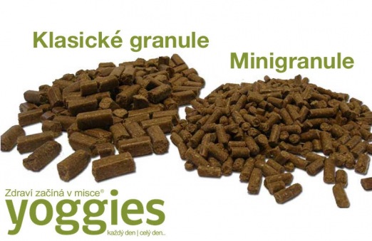 Granule Yoggies sú bez lepku, sóje aj chémie. Sú plné prírodných živín, vitamínov, byliniek a vyváženého obsahu surového kuracieho i hovädzieho mäsa, ktorého obsahujú 87% pred pomalým sušením. Sú výborne stráviteľné a nebobnajú v žalúdku, čím sa znižuje riziko torzie žalúdka najmä u väčších plemien psov a tým sa aj ľahšie trávia. Vďaka tomu sú granule Yoggies špičkou na trhu.
